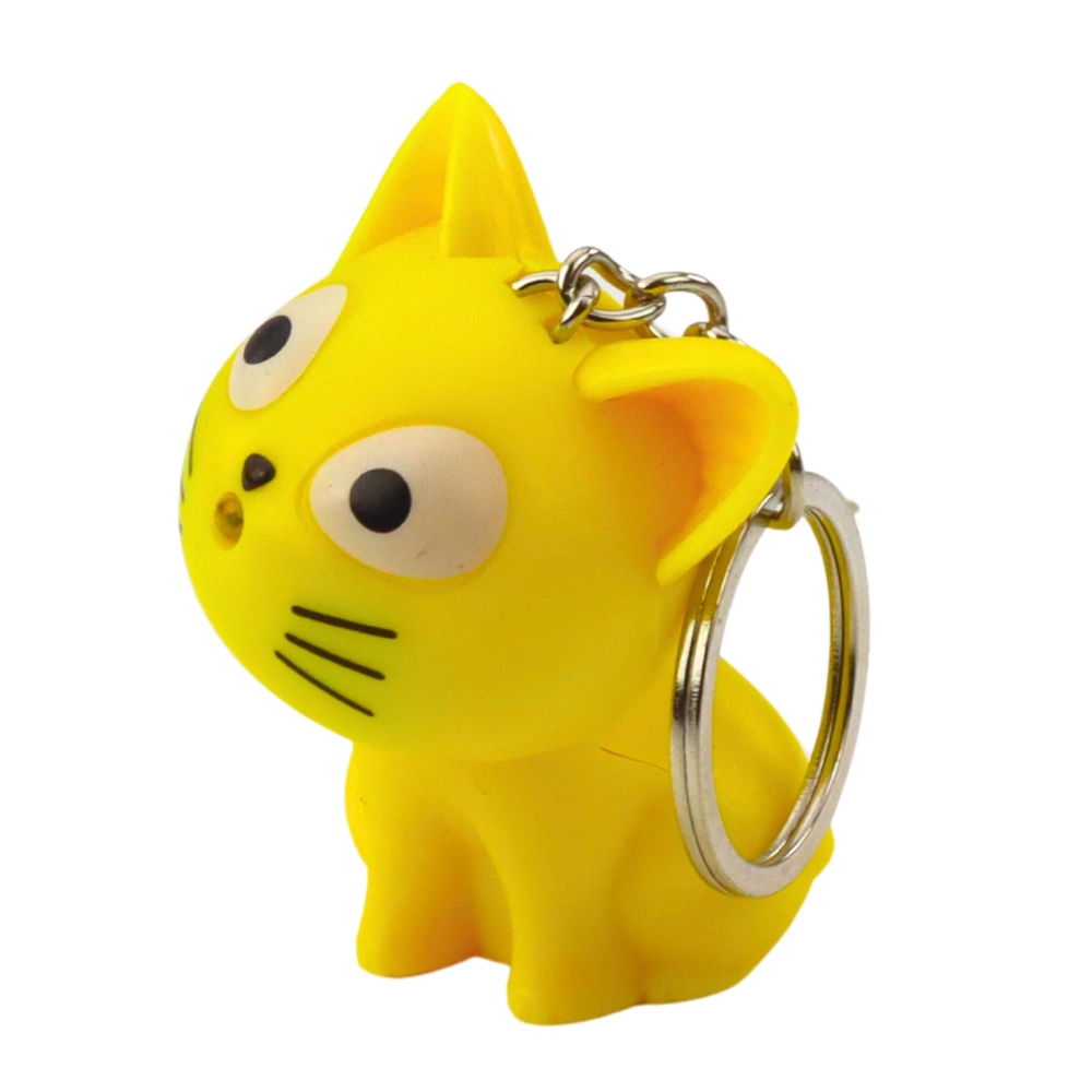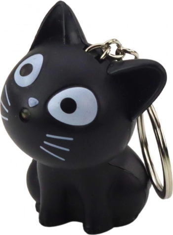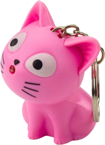 Schattige sleutelhanger in de vorm van een kat die plezier en functionaliteit combineert – dankzij het LED-licht en de geluidseffecten dient hij als een kleine zaklamp én een stijlvolle versiering voor sleutels of rugzak. Met één druk op de knop licht de kat op en maakt hij een karakteristiek geluid. Licht en duurzaam kunststof, compacte afmetingen en een mix van kleuren maken het een geweldig cadeau of promotionele gadget.
