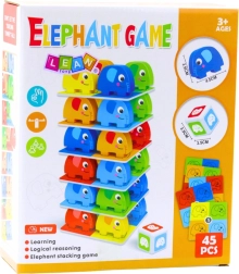 Het familievaardigheidsspel Olifant op olifant is ideaal voor gezamenlijke momenten van kinderen en volwassenen. Stevige houten olifantjes in levendige kleuren kunnen op veel manieren worden gestapeld – van eenvoudige rijen tot hoge torens die je handigheid, strategie en vaste hand op de proef stellen.
