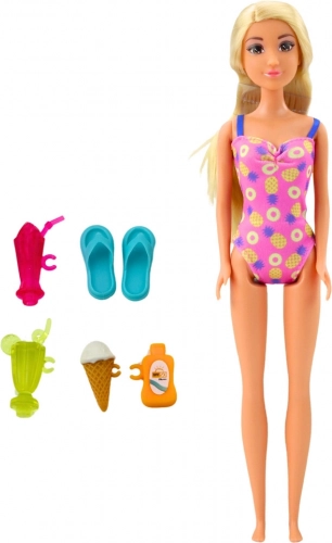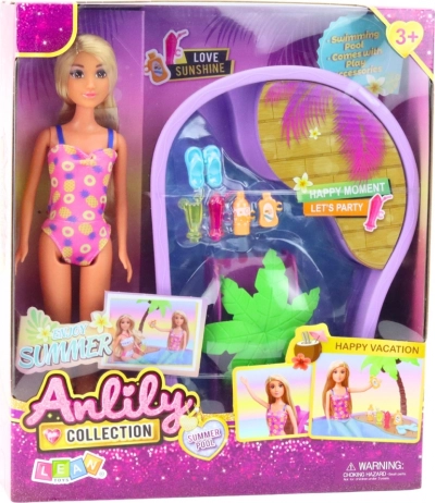 ANLILY-pop op het strand met zwembad, palm en accessoires. Stijlvol badpak, glijbaan en creatief speelgoed voor uren zomers plezier.