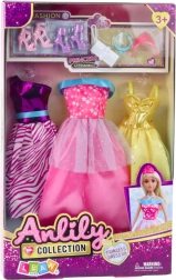 Stijlvolle set voor kleine modeliefhebbers: drie prachtige jurken en accessoires voor poppen van circa 29–30 cm. Bevat gouden galajurk, roze tulejurk, jurk met dierenprint, twee paar schoenen, een handtas, een kroon en een ketting. Dankzij het gemakkelijke aankleden ontwikkelen kinderen hun fijne motoriek, creativiteit en fantasie.