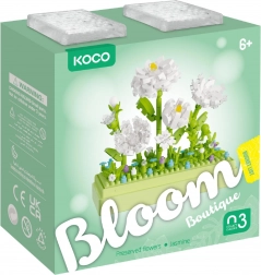 De mini bouwset KOCO Jasmijn is een ideale keuze voor iedereen die van creatief knutselen en stijlvol design houdt. De uiteindelijke bloem oogt elegant en komt mooi tot zijn recht op een plank, bureau of in de kinderkamer. De KOCO-bloemenserie biedt meerdere soorten die prachtig te combineren zijn, zodat je je eigen thematische collectie kunt maken.
