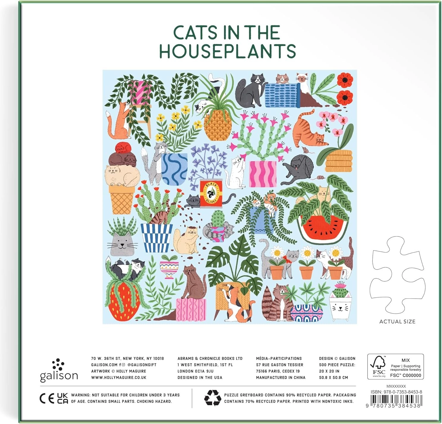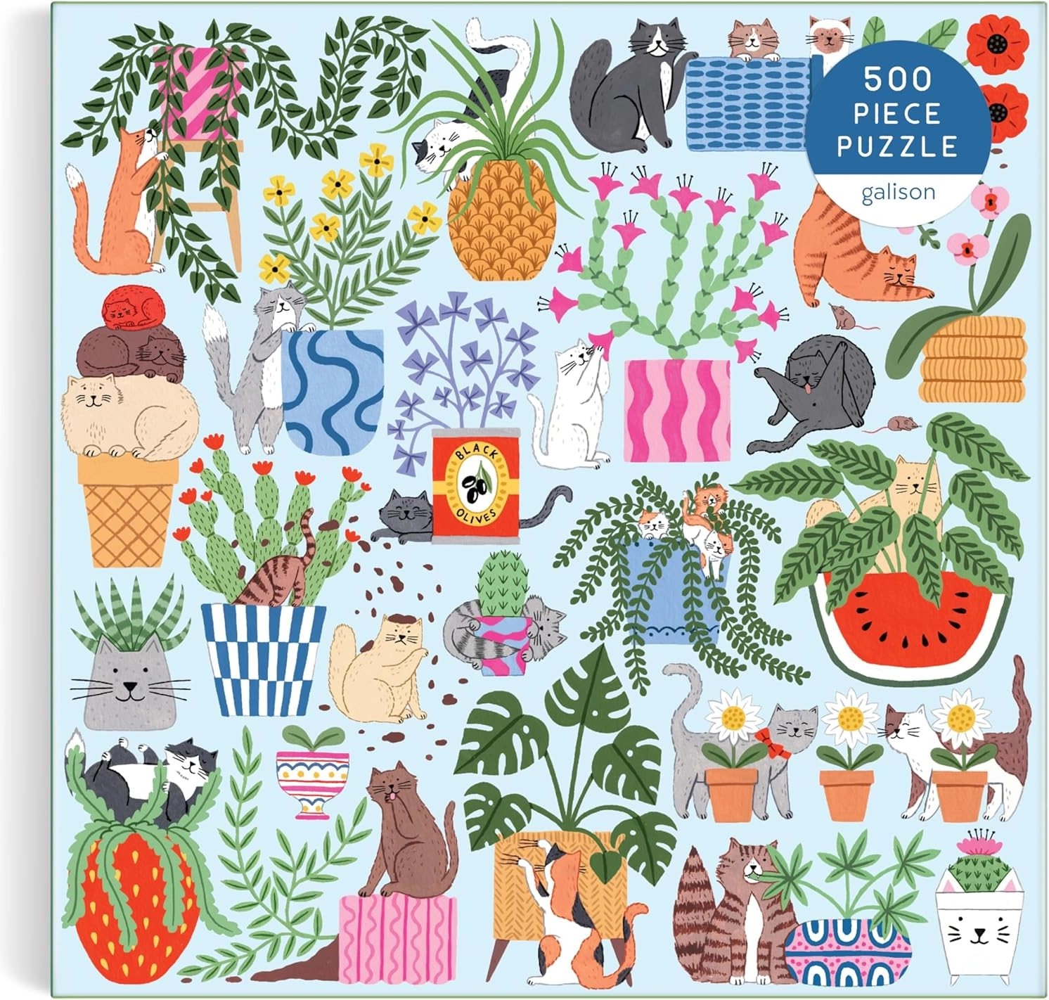 Geniet van ontspanning met een originele vierkante puzzel met katten in bloempotten. De verpakking bevat 500 stukjes en een voorbeeldposter voor makkelijker leggen. Na het leggen heeft de puzzel een formaat van ca. 51 × 51 cm – ideaal om in te lijsten en tentoon te stellen.