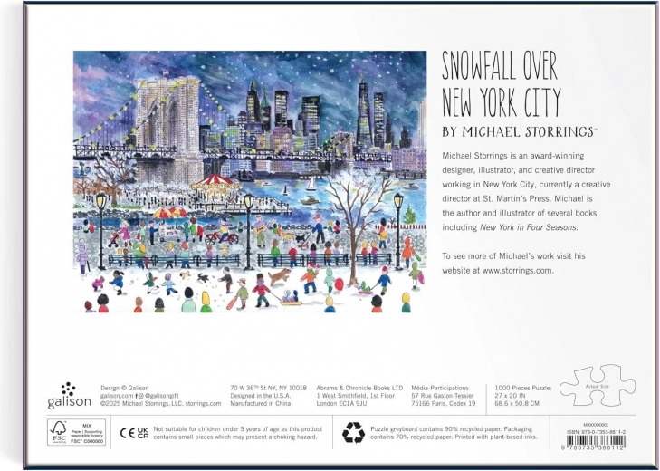 Geniet van ontspanning en plezier met een hoogwaardige puzzel van 1000 stukjes met een dramatisch winters tafereel van New York. In de doos zit een voorbeeldposter en na het leggen krijg je een grootformaat afbeelding van 68,6 × 50,8 cm. Ideaal voor liefhebbers van stadsgezichten, winterse sferen en premium puzzels van GALISON.