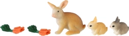 Schattige set van drie plastic konijntjes met accessoires voor creatief spel. Stimuleert fantasie, empathie en fijne motoriek. Ideaal voor in een poppenhuis of op een boerderij met dieren, ook geweldig als cadeau dankzij het praktische doosje.