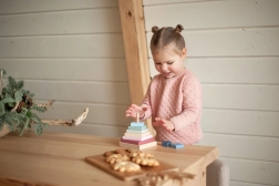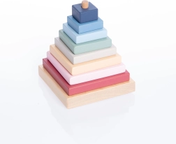 Ontdek het kwalitatieve houten speelgoed van CUBIKA in de pastelcollectie: een gekleurde piramide met 9 delen die kinderen stapelen tot een oud-Egyptische piramide. Het stapelen traint de fijne motoriek, oog-handcoördinatie en stimuleert tegelijk de verbeelding.