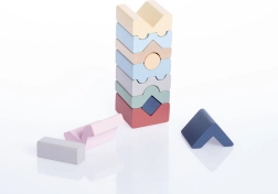 De Pasteltoren XI van het merk Cubika is een doordachte houten stapelset met 12 delen in zachte pasteltinten. Kinderen rijgen en stapelen de onderdelen zodat ze correct op elkaar aansluiten en er een stabiele toren van 16 cm hoog ontstaat. Dankzij de precieze afwerking van het hout is de set prettig hanteerbaar en veilig voor kleine kinderhanden.