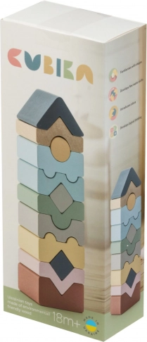 Ontdek de kwalitatieve houten stapelset Cubika Pastel Toren XI met 12 kleurrijke delen die kinderen stapelen tot een stabiele toren. Het speelgoed is gemaakt van ecologische esdoorn en beuk, geverfd met veilige, watergedragen verven, en stimuleert senso-motoriek, logisch denken en creativiteit. De hoogte van de opgebouwde toren is 16 cm. Geschikt vanaf 18 maanden, gemaakt in Europa, voldoet aan TÜV en norm EN 71.