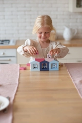 De Cubika Pastel gekleurde huisjes bouwset biedt kinderen volop mogelijkheden voor vrij spel en begeleid leren. Elk van de zes huisjes heeft een “bewoner” in de bijpassende kleur – de taak is om de juiste combinatie te vinden en het poppetje in het huisje te plaatsen. Zo oefenen kinderen op een natuurlijke manier kleurherkenning, senso-motoriek en logisch denken. Met de blokjes kun je ook eenvoudig andere architectonische bouwwerken maken en zo de creativiteit en verbeelding stimuleren.