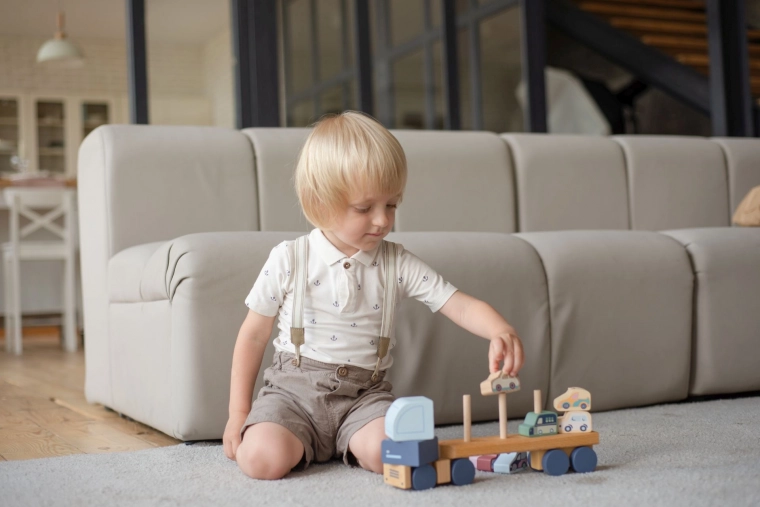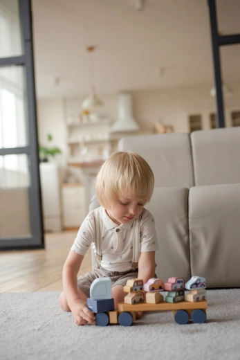 Ontdek de kwalitatieve houten vrachtwagen met auto’s in zachte pasteltinten van CUBIKA. De set bevat 12 gekleurde delen waarmee kinderen een transportvrachtwagen bouwen die 8 autootjes kan vervoeren. Het speelgoed van ecologisch geteeld hout stimuleert fijne motoriek, logisch denken en creativiteit. Veilige watergedragen verven, Europese productie en TÜV-certificering garanderen hoge kwaliteit en veiligheid.