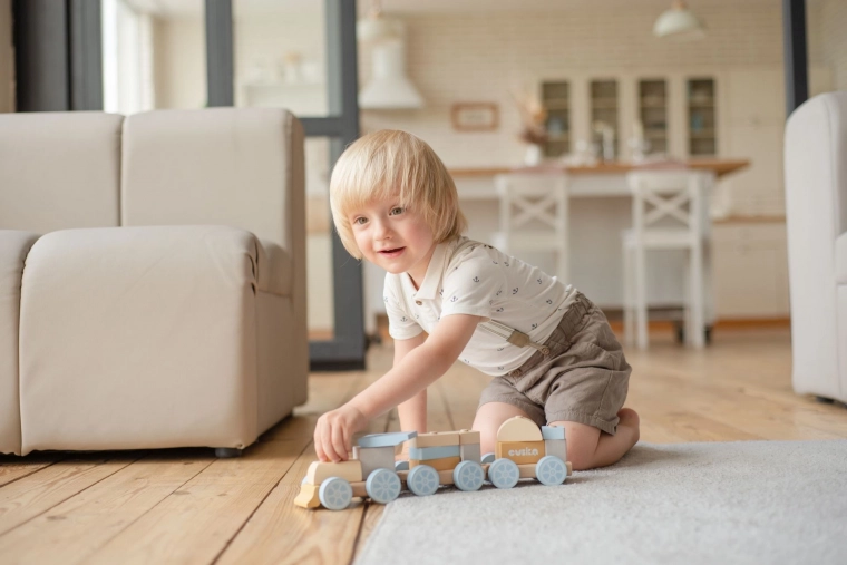 Het product is gemaakt van ecologisch geteelde esdoorn en beuk en geverfd met niet-giftige, waterbasisverven zonder geur. Het speelgoed voldoet aan de strenge veiligheidsnormen van TÜV en EN 71 en is geschikt voor kinderen vanaf 18 maanden, waardoor het een ideaal cadeau is voor dagelijks speelplezier.