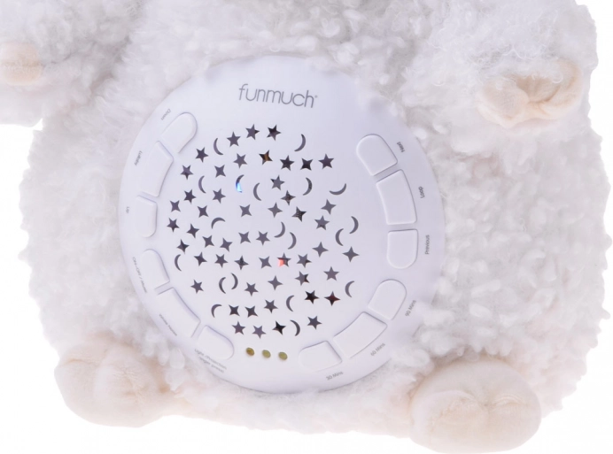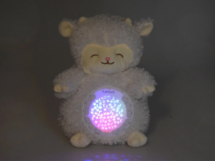 Dit zachte, knuffelige schaap creëert een magische sfeer in de kinderkamer voor rustig inslapen. De kleurrijke lichtprojectie van sterren en maantjes op muren en plafond, samen met zachte melodieën, zee- of regengeluiden, helpt je kindje te kalmeren en een gevoel van geborgenheid te geven.