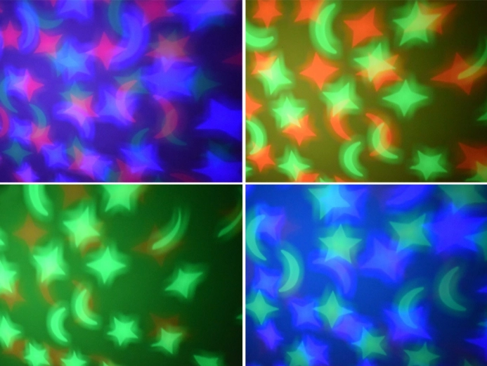 - Projectie van sterretjes en maantjes (rood, groen, blauw)