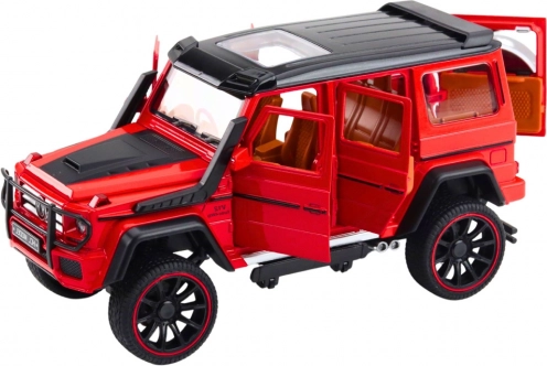 Het metalen terreinmodel op schaal 1:22 combineert duurzame materialen met een realistische afwerking. De rode carrosserie, zorgvuldige details en sportief design versterken de indruk van een echte off-roader die zowel thuis als onderweg geweldig oogt.
