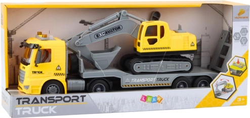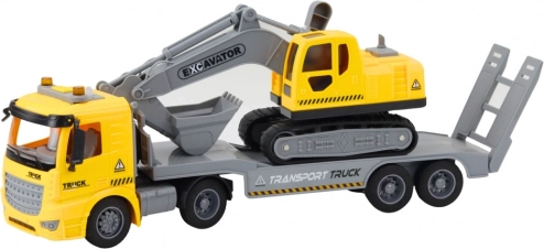 De set met vrachtwagen, platform en rupsgraafmachine is ideaal voor kinderen die van bouwvoertuigen houden. Het platform heeft bewegende onderdelen en kan eenvoudig worden losgekoppeld, zodat de truck op pad kan voor een nieuwe lading. De rupsgraafmachine voegt authentieke scènes van een echte bouwplaats toe aan het spel.