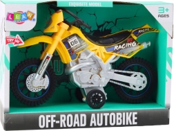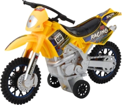 Motorcrossspeelgoed voor kleine liefhebbers van terreinmachines met een realistisch design, licht- en geluidseffecten en een stevige constructie. Grote terreinbanden en de opvallende gele kleur met race-accenten benadrukken de sportieve look en zorgen voor actievolle speelpret.