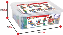 Uitgebreide WOOPIE-bouwset met 320 kleurrijke onderdelen die de fantasie en vaardigheden van kinderen stimuleert. Dankzij verschillende vormen en verbindingsmethoden bouwen kinderen stabiele 2D/3D modellen en constructies met bewegende onderdelen. Gemaakt van veilig en duurzaam materiaal, opgeborgen in een praktische box met deksel – ideaal om te spelen thuis, in de kleuterklas of tijdens therapie.