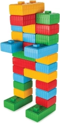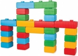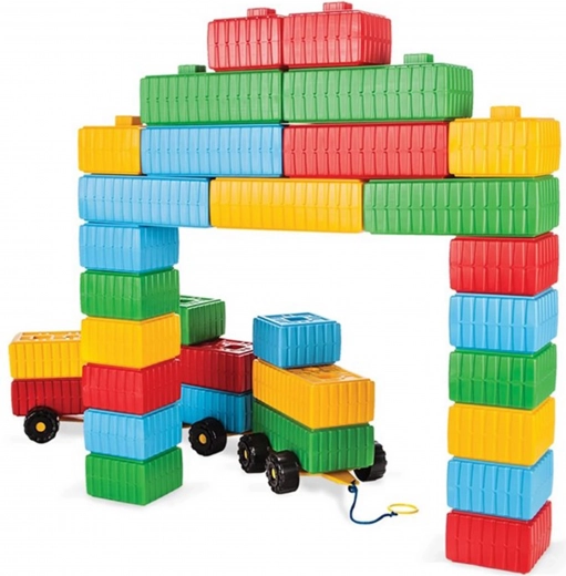 De set biedt talloze mogelijkheden: van een autootje op wielen tot eenvoudige gebouwen. Tijdens het bouwen oefenen kinderen spelenderwijs het herkennen van vormen en kleuren en ontwikkelen ze hun oog-handcoördinatie.