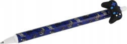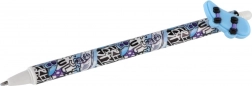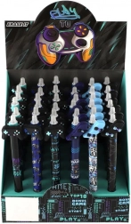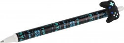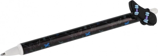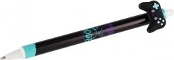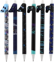 Ontdek de set uitwisbare balpennen in 6 kleuren, perfect voor alle videogamefans. Elke pen heeft een originele topper in de vorm van een gamecontroller, skateboard, strikje of vleugels en is versierd met moderne prints in een zwart-blauw palet. Dankzij de uitwisbare inkt corrigeer je kleine foutjes eenvoudig zonder vegen.