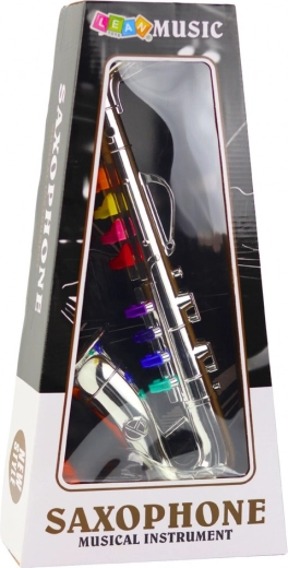 De zilveren kindersaxofoon met gekleurde kleppen biedt kinderen hun eerste stap in de wereld van muziek. Eenvoudige bediening zonder batterijen maakt direct spelen mogelijk, experimenteren met klanken en het leren van eenvoudige melodieën. Een geweldige keuze voor kleine muzikanten en als origineel cadeautje.