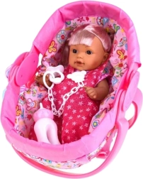 - interactieve pop 30 cm, draagzak met schouderbanden en dekentje met klittenband, speen aan een kettinkje, flesje, originele verpakking
