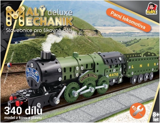 Bouw een iconische stoomlocomotief met kolenwagen en beleef het plezier van je eigen constructie. De Kleine Mechanicus-set combineert stevige metalen elementen met duurzame kunststof accessoires en biedt dankzij de verbinding met schroefjes en moertjes een realistische montage-ervaring. Het voltooide model zorgt ook na het bouwen voor veel speelplezier.