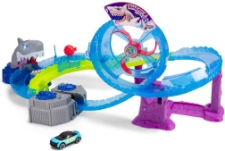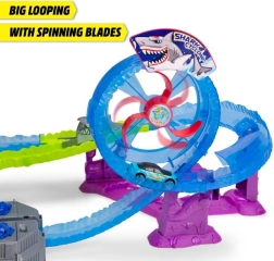 Geniet van een adrenalinekick op de gemotoriseerde autobaan met haaiensthema. De auto’s razen op topsnelheid door de looping, rijden door de watertunnel en kunnen landen vlak bij de reusachtige haai – maar die kan elk moment zijn kaken dichtklappen! De ingebouwde turbo-booster jaagt de voertuigen naar maximale snelheid en zorgt voor een intense racebeleving.