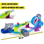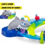 Een leuke autobaan met het WHITE SHARK-thema zorgt voor een spannende rit met een looping, turbo-booster en indrukwekkende licht- en geluidseffecten. Metalen autootje inbegrepen, een actievolle rit door een watertunnel en de onverwachte toeslaande kaken van de grote witte haai.