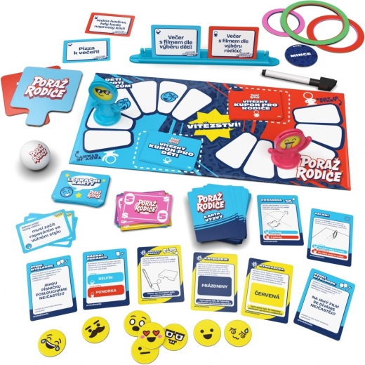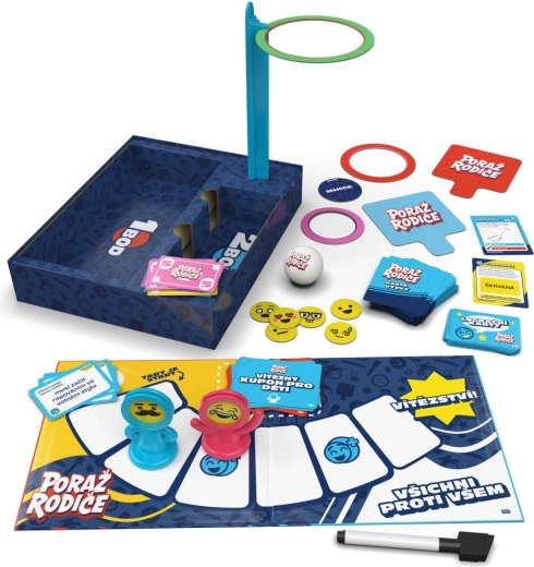 In deze frisse editie van het populaire spel Versla de Ouders gaat de fun naar een hoger niveau. Teams voltooien eerlijk uitgebalanceerde uitdagingen, beantwoorden quizvragen over generaties heen en gebruiken de speldoos om 3D-hindernissen te bouwen met uitdrukbare onderdelen. Het spel is ideaal voor familie-avonden en brengt tempo, humor en gezonde competitie tussen kinderen en volwassenen.
