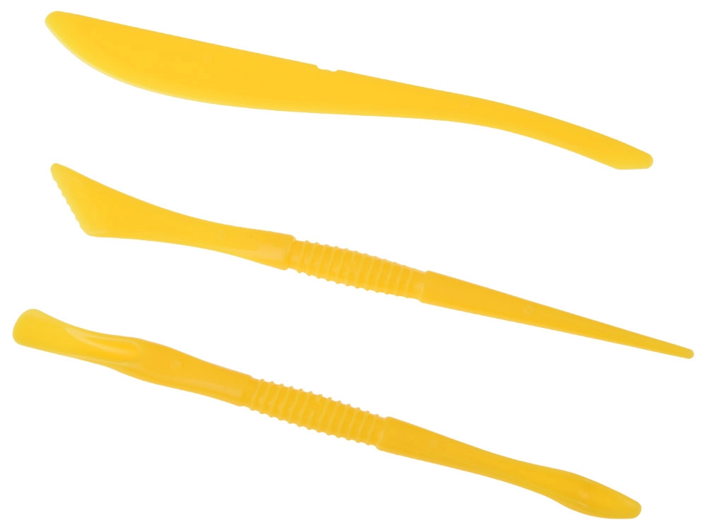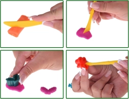 - 6 potjes klei, 10 vormpjes, 3 kunststof mesjes