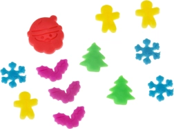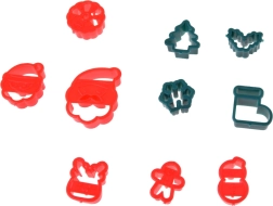 - 10 kerstvormpjes: sneeuwpop, peperkoekmannetje, rendier, grote Sinterklaaskop, kleine Sinterklaaskop, kerstkrans, sneeuwvlok, Sinterklaasschoen, kerstboom, maretak