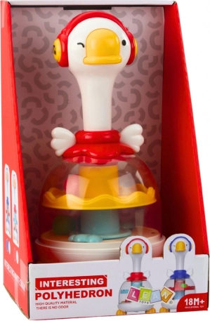 Interactief trommeltje in de vorm van een gans met een transparante koepel en gekleurde kogeltjes, boeiend voor elk kind. Bij het indrukken van het kopje gaan de kogeltjes draaien, begeleid door lichteffecten en geluidseffecten die zintuiglijke ontwikkeling, fijne motoriek en het begrip van oorzaak en gevolg stimuleren. Een stabiele basis en hoogwaardige afwerking zorgen voor veilig speelplezier voor kinderen vanaf 18 maanden.