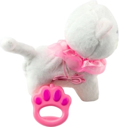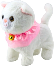 Schattig interactief wit kitten van zachte pluche met een roze kraagje en een belletje om de hals, een plezier voor ieder kind. Dankzij de lijn met knop gaat het bij indrukken lopen en maakt het miauwgeluiden. Het speelgoed stimuleert empathie, zorg en creativiteit en zorgt voor uren vrolijk speelplezier.