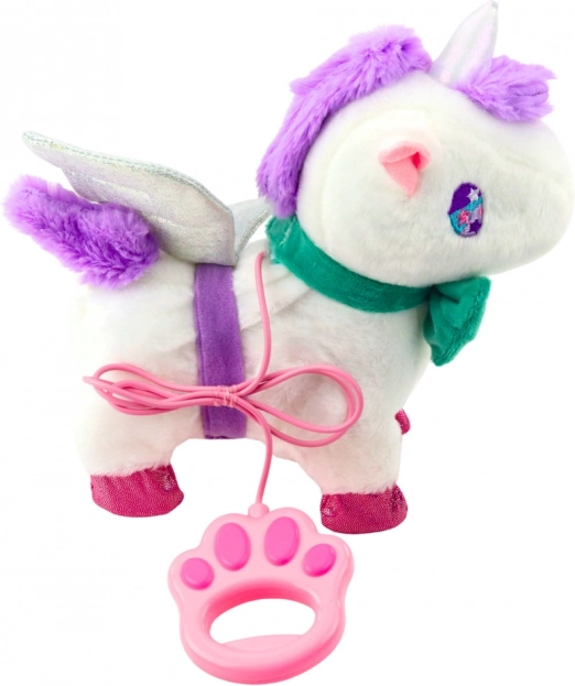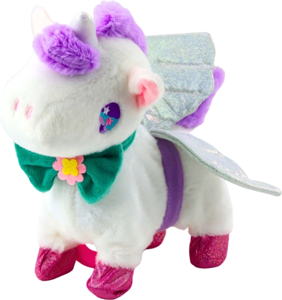 Een schattige interactieve pluchen eenhoorn brengt kinderen in een wereld van sprookjesachtige magie. Hij is zacht, prettig om aan te raken en reageert op aaien – hij begint te lopen, met zijn staart te kwispelen en maakt hinnik- en drafgeluiden. Dankzij de bedieningslijn met knop kan het kind hem makkelijk leiden, afneembare glittervleugels en een gekleurde strik maken personalisatie mogelijk. Een geweldig cadeau dat verbeeldingskracht, creativiteit en empathie stimuleert.