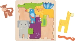 Inclusief een houten frame dat de puzzel bij elkaar houdt en het leggen én opbergen vergemakkelijkt. Een geweldige keuze als eerste puzzel voor kinderen die van dieren en het ontdekken van de wereld houden.