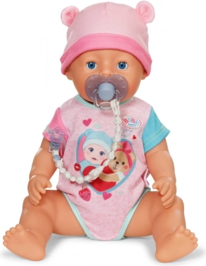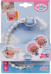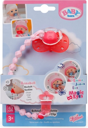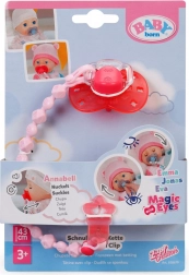 Geef je pop realistische verzorging met de fopspeen met clip, die je gemakkelijk aan de outfit vastmaakt en dankzij de clip niet kwijtraakt. Volledig compatibel met BABY born en Baby Annabell poppen van 43 cm en benut hun slimme functies – bij het zuigen maken de poppen karakteristieke geluiden en na een lichte draai aan de speen kunnen ze hun ogen sluiten en “in slaap vallen”.
