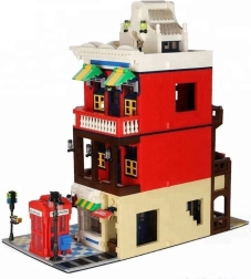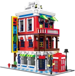 Het model zit vol iconische accessoires: een rode telefooncel – een symbool van het Verenigd Koninkrijk, een straat met bord voor realistische scènes, een decoratief uithangbord en een uitgewerkte dakconstructie die de architectonische stijl van het gebouw accentueert.