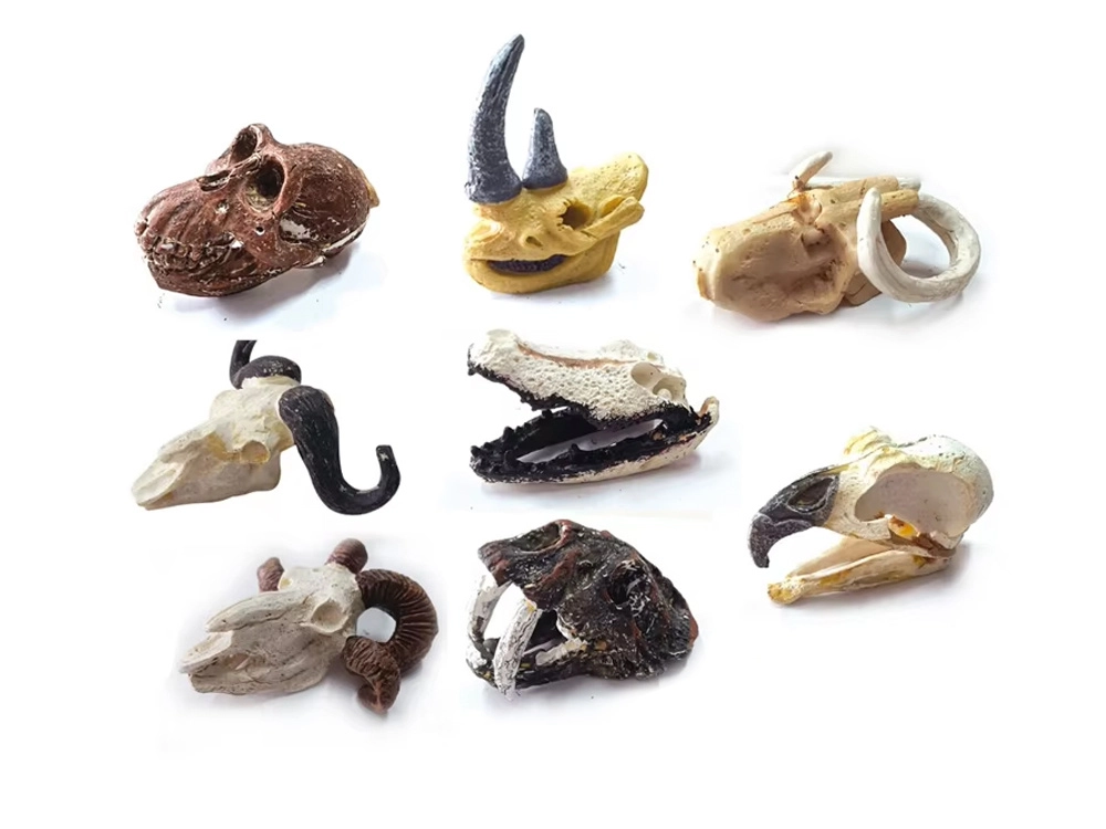 Elk blok verbergt een ander schedelmodel, bijv. mammoet, sabeltandtijger, krokodil, adelaar, neushoorn, buffel, schaap of primaat. Ideaal om te verzamelen en te leren.