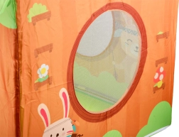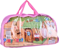 Schattige kindertent in de vorm van een huisje met een motief van bosdieren creëert voor kinderen hun eigen speelplek, zowel thuis als in de tuin. Hij is licht, makkelijk te monteren en dankzij de draagtas ook praktisch om op te bergen en te vervoeren. Biedt deurtjes en raampjes voor gemakkelijke toegang en ventilatie en stimuleert creativiteit en fantasie van kinderen.
