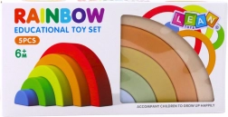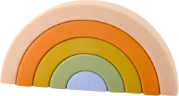 De pastel regenboog bouwset van rubber is een geweldige sensorische speelgoed voor de allerkleinsten. Stimuleert creativiteit, logisch denken en coördinatie van bewegingen. Vijf zachte onderdelen in verschillende formaten kunnen vrij worden gestapeld en gecombineerd tot talloze constructies. Veilige, zachte en flexibele blokken zonder scherpe randen zorgen voor comfortabel en veilig spel.