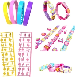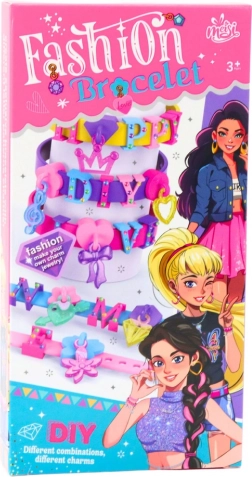 Maak je eigen unieke sieraden met deze creatieve DIY-set. Je vindt erin 4 verstelbare rubberen armbanden in verschillende kleuren, een ruime keuze aan bedels met letters en patronen en gekleurde stickers voor een unieke decoratie. Geweldig plezier dat creativiteit, fijne motoriek en esthetisch gevoel stimuleert.