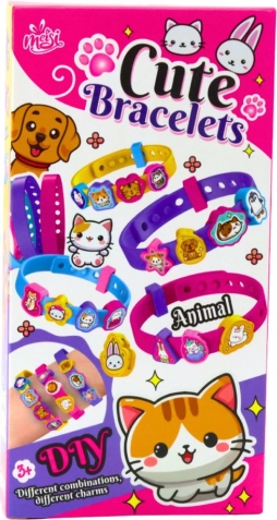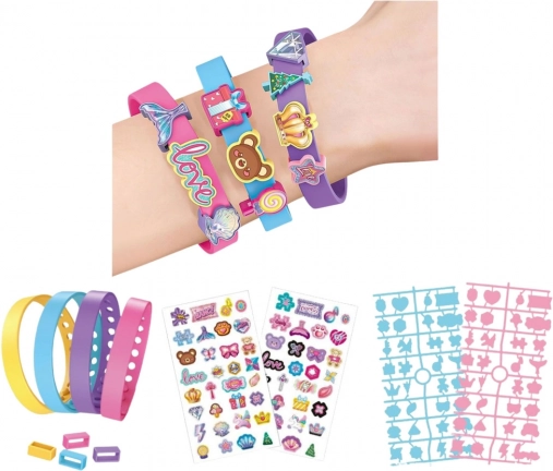 Creatieve set voor kinderen waarmee ze hun eigen kleurrijke armbanden met dierenmotieven kunnen maken. Bevat 4 verstelbare rubberen armbanden, kleurrijke bedels en stickers voor eindeloze combinaties. Geweldige activiteit die fijne motoriek, creativiteit en verbeelding stimuleert.