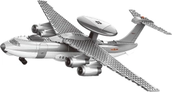 Dit gedetailleerde model van het beroemde vliegtuig AWACS E‑3 Sentry toont getrouw het silhouet met de grote roterende radarantenne op de rug van de romp. Met 217 onderdelen en een 1:100‑schaal is het ideaal om mee te spelen of om neer te zetten in een kamer of vitrinekast. De neutrale wit‑grijze kleurstelling, geïnspireerd op NATO/USAF‑toestellen, versterkt de realistische uitstraling.