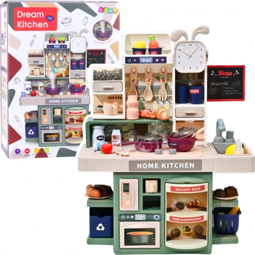 De kinderkeuken zorgt voor een realistische kookbeleving met licht-, geluid- en stoom effecten. Kinderen kunnen “koken”, “bakken” en “braden”, de gootsteen schoonmaken en accessoires op de plankjes organiseren. De hoogwaardige en veilige afwerking garandeert een lange levensduur en comfortabel gebruik.