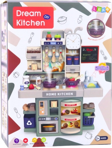 Kinderkeukentje met stoom, licht en geluid – 33 accessoires