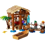 Ontdek de sfeervolle strandhut op palen met een steiger, palmboom en een piratenbootje. Het afneembare dak geeft toegang tot het verfijnde winkelinterieur met toonbank, drankjes en voorraden. Bevestig een “Wanted”-poster aan de muur en voeg er meer uit de ONE PIECE-serie aan toe. De set is ideaal voor fans van anime en piraten die iconische scènes willen herbeleven of hun eigen verhalen willen maken.