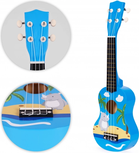 Prikkel de fantasie van kinderen met de ECOTOYS-ukelele – een lichte houten gitaar voor kleine muzikanten vanaf 3 jaar. Voorzien van 4 nylon snaren, een stemmechaniek, 12 frets voor nauwkeuriger spel en comfortabel spelen met het meegeleverde plectrum. Het kleurrijke eilandmotief valt meteen op en het instrument stimuleert fijne motoriek, creativiteit en muzikaal gevoel.
