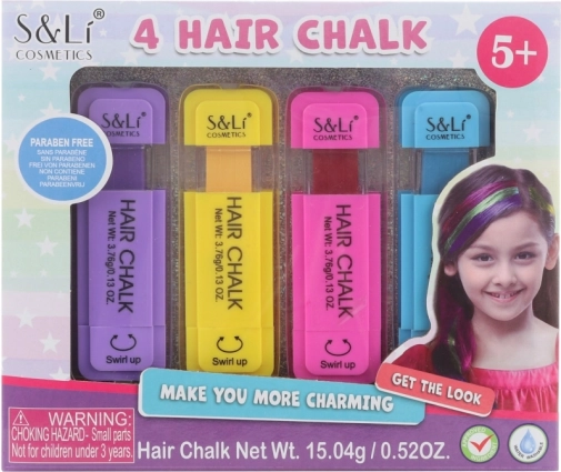 Probeer eenvoudig en leuk kleuren met een set haarkrijtjes in 4 levendige tinten. Ideaal voor feestjes, fotoshoots en dagelijkse experimenten. De kleuren zijn makkelijk aan te brengen en kunnen snel worden uitgewassen met water en shampoo. Veilig voor kinderen vanaf 5 jaar, praktisch verpakt in een doosje.
