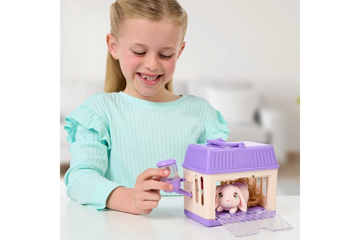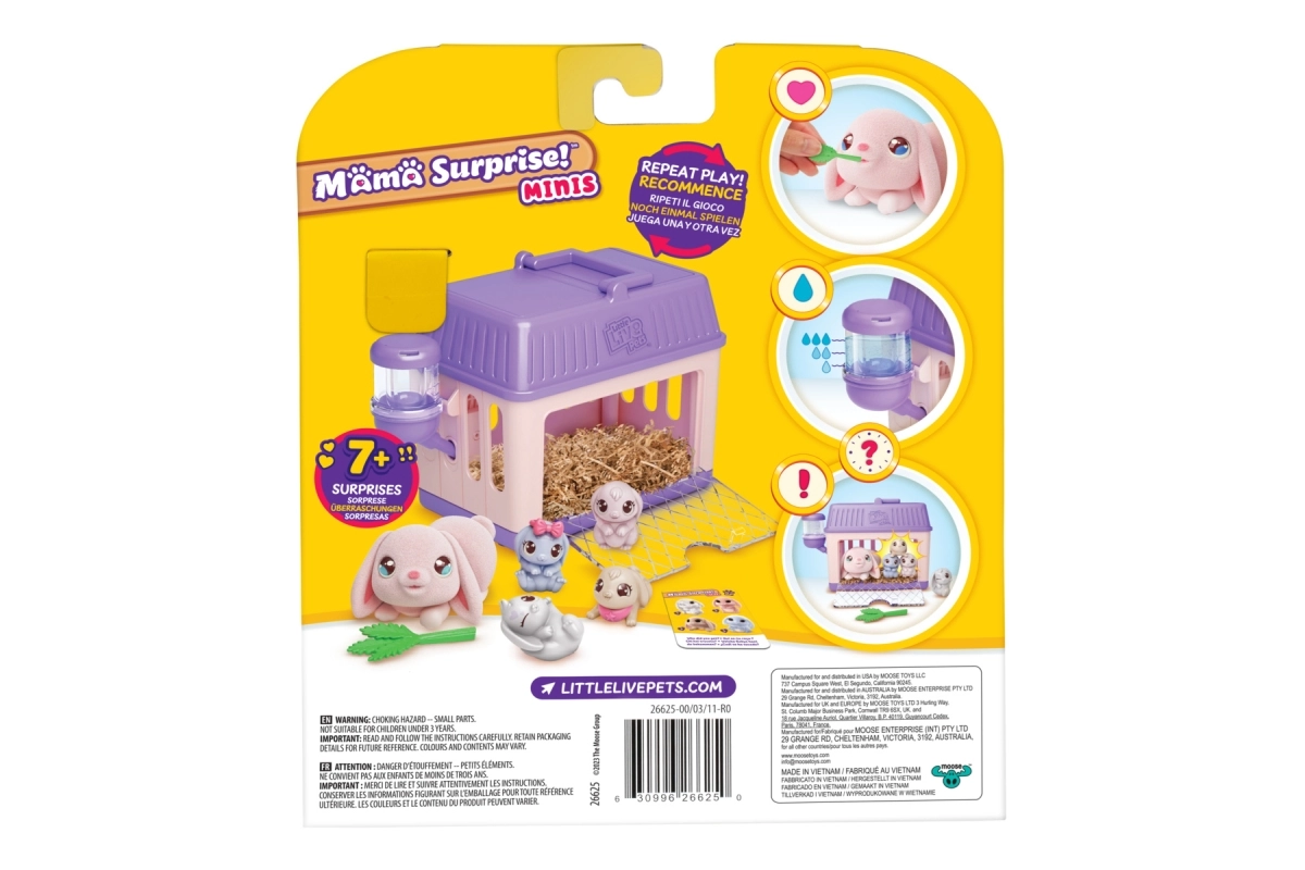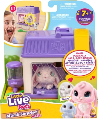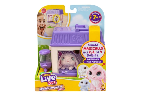 Ontdek de wereld van lieve konijntjes met Little Live Pets – Mama Surprise. Zorg voor de mama, aai haar, geef haar te eten en plaats haar in het hok. Na het toevoegen van water aan het drinkflesje wacht je na ongeveer 60 minuten een verrassing in de vorm van kleine babykonijntjes. Je kunt het spel herhalen en de kleintjes ook direct laten verschijnen nadat je de mama in het hok hebt gezet.