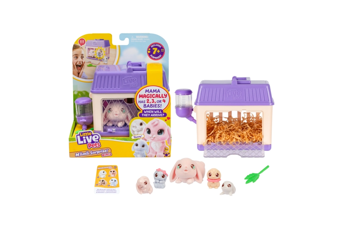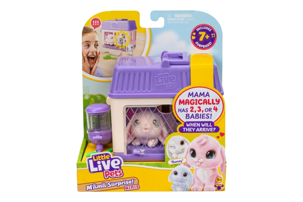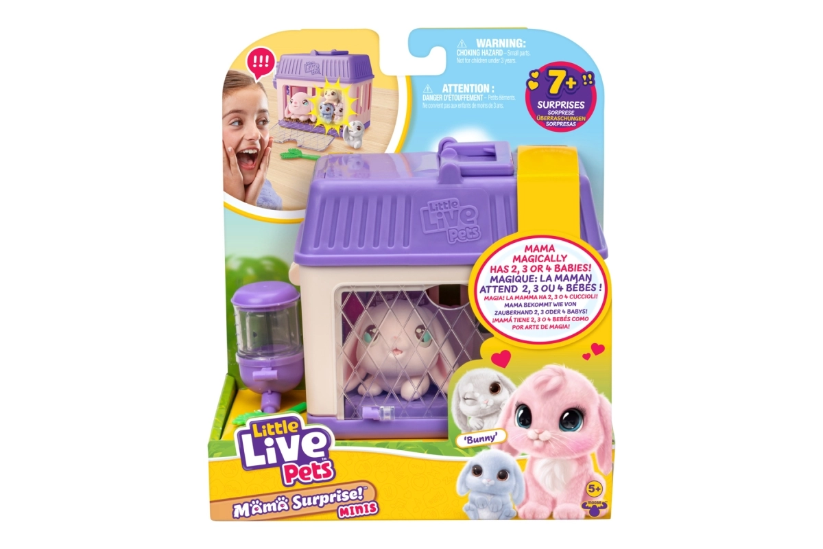 Beleef de magie met Little Live Pets – Mama Surprise! In de set vind je een interactieve konijnenmama en 2, 3 of 4 schattige babykonijntjes die verschijnen nadat je voor haar hebt gezorgd en het drinkflesje met water hebt gevuld. Geniet van tot wel 7 verrassingen, knuffelen, voeren en herhaald speelplezier. Ideaal voor kinderen vanaf 5 jaar.