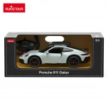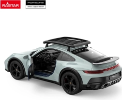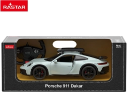 Stijlvolle RC auto PORSCHE 911 Dakar van het merk RASTAR in schaal 1:14 overtuigt met precieze detaillering, soepel rijgedrag en betrouwbare besturing op 2,4 GHz. Voorzien van LED-verlichting, te openen deuren, onafhankelijke vering en rubberen banden voor betere grip.